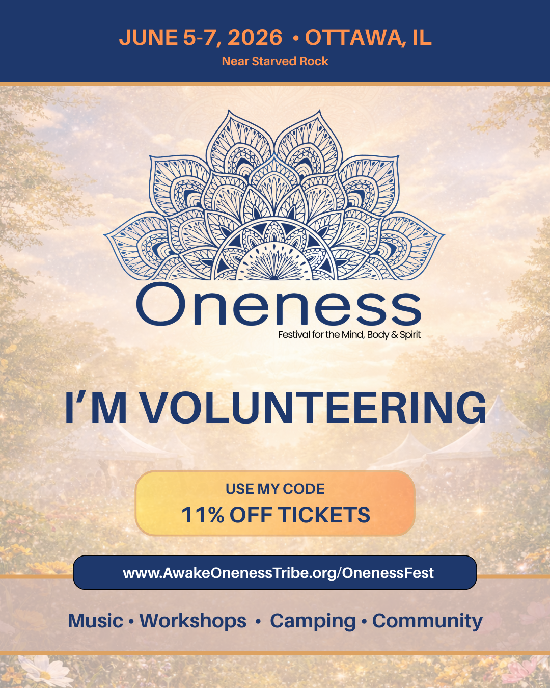 This year I’ll be volunteering at the AWAKE: Oneness Festival, a beautiful camping festival filled with music, workshops, healing experiences, and an incredible community. 🌿🎶