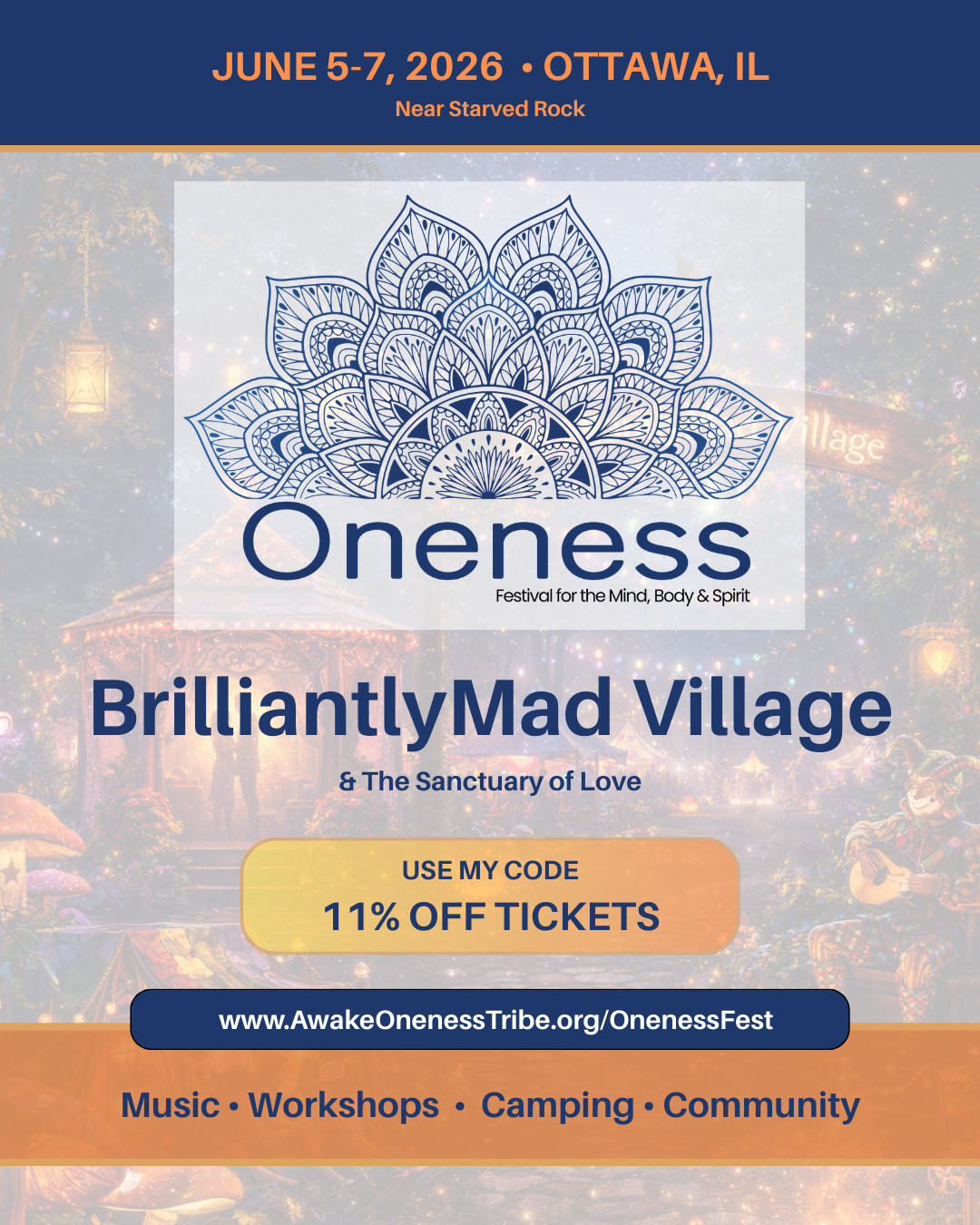 #OnenessFest, #BrilliantlyMad, #SanctuaryOfLove, #FestivalMagic #ConsciousCommunity
